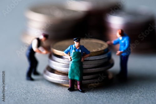Fototapeta premium 積み上げられたお金と人間