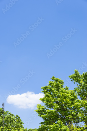 Obraz premium 青空と新緑の鮮やかな緑