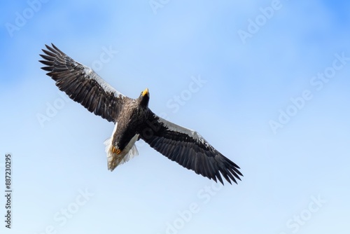 Obraz premium 青空バックに頭上を悠然と飛ぶオオワシ