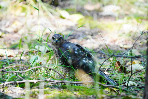 © まー, Obraz premium 地面に降りてエサを探すハイタカ