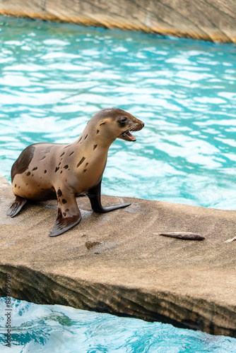 Fototapeta premium 鳴いているカリフォルニアアシカの子ども