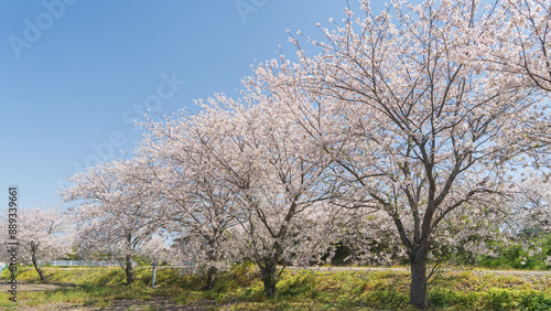 © aomas, Obraz premium 日本の春の風景|【千葉県千葉市】道沿いに咲く満開の桜(蘇我池の横)