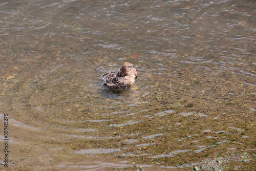 Fototapeta premium 猛暑の中で川に降りて水浴びをしている大鷹の幼鳥