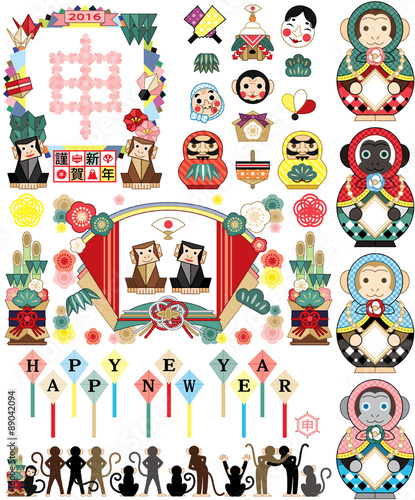 Fototapeta premium 2016年申年年賀状用イラストカットデザイン素材集(和風色々)カラフル
