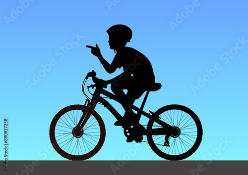 Fototapeta premium ヘルメットを被り自転車に乗る少年シルエット