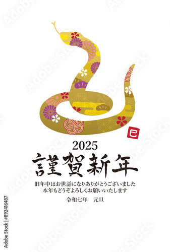 Fototapeta premium 2025年 年賀状縦 巳のイラスト
