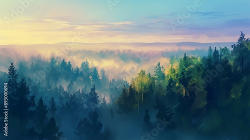 © 雅, Obraz premium 霧がかかった森の風景、朝13
