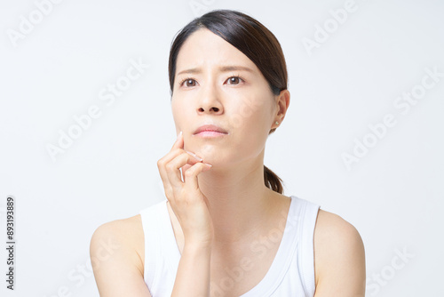 Fototapeta premium 肌トラブルに悩むタンクトップ姿の女性