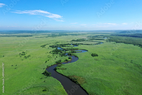 © Digi-lab, Obraz premium 夏の釧路湿原ドローン空撮