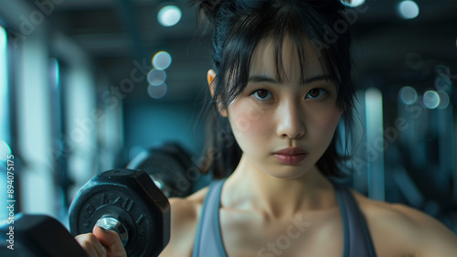 Obraz premium ジムでトレーニングに励む若い日本人女性のポートレート