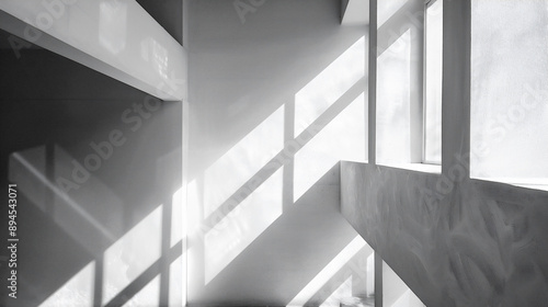 © maitakekinoco, Obraz premium 光と影が白い壁に幾何学的な形を作り出している、モノクロ写真アート風背景グラフィック