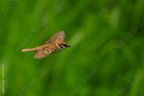 Fototapeta premium 羽ばたくスズメ