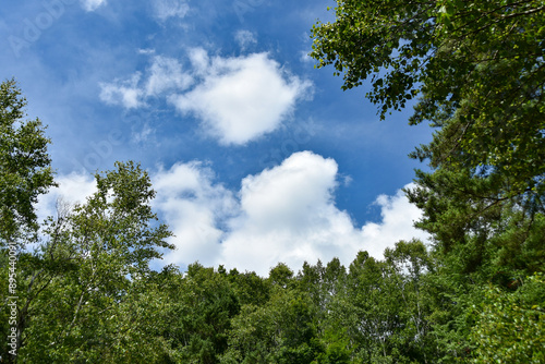 Obraz premium 真夏の風景 木々の間から見える青空