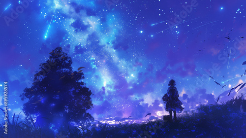 Obraz premium 星空とミルキーウェイの幻想的な夜景