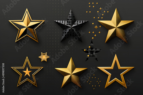 Fototapeta premium ゴールドとブラックの輝き: スタイリッシュな星形デザインコレクション