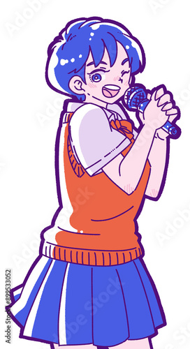 © マキア, Obraz premium カラオケを楽しむ女子高生