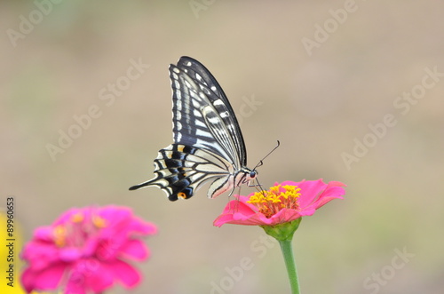 © tomo, Obraz premium アゲハ蝶とジニアの花