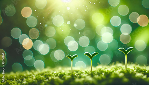 © dango, Obraz premium 命の芽生え 若葉 苔 緑 自然 光 生命 成長 森林 環境 エコ 木漏れ日 フレッシュ 小さな植物 春 新緑 森 森林浴 希望 平和 植物