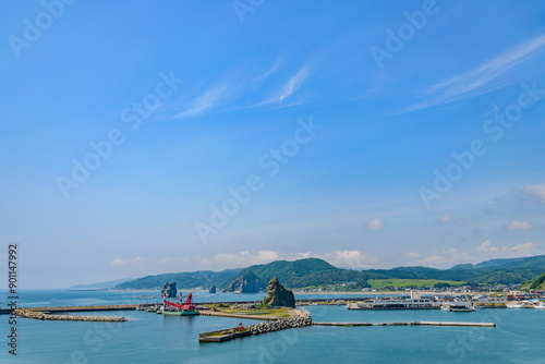 © rujin, Naklejka premium 北海道日高の様似漁港とエンルム岬