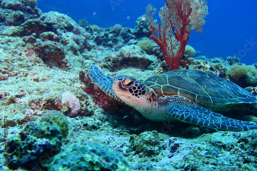 Obraz premium 休憩中のアオウミガメ