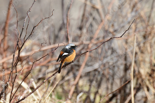 © mayudama, Naklejka premium 枯れ枝にジョウビタキ