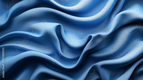 © coma3d, Obraz premium 青の布の背景、ひだ、波