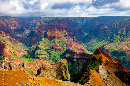 Naklejka premium アメリカのハワイにあるカウアイ島のワイメア渓谷