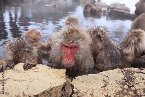 © norikazu, Obraz premium 温泉に入りくつろぐスノーモンキー 長野県山ノ内町 地獄谷野猿公苑