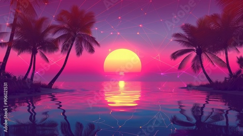 © NOREAL, Naklejka premium ヤシの木と夕暮れの海