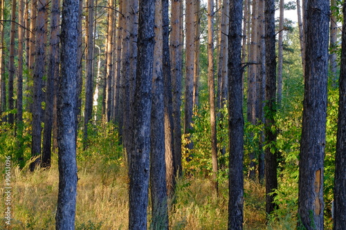 © avtk, Obraz premium Закат в сосновом лесу в начале осени.