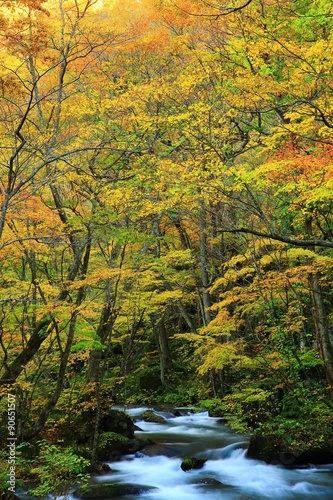 © yspbqh14, Obraz premium 青森県十和田 紅葉の奥入瀬渓流