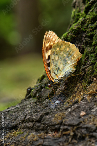 Fototapeta premium 夏の雑木林で見られる大きく、青紫の翅がとても美しいチョウ、オオムラサキ