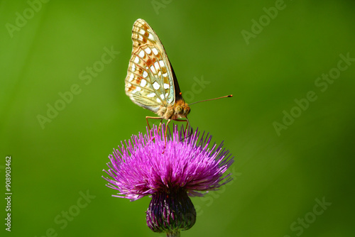 Obraz premium 初夏の高原で見られるオレンジ色の美しいチョウ、ウラギンヒョウモン