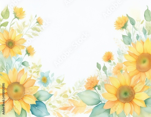 © Stella Design, Obraz premium 水彩ひまわりのフレーム