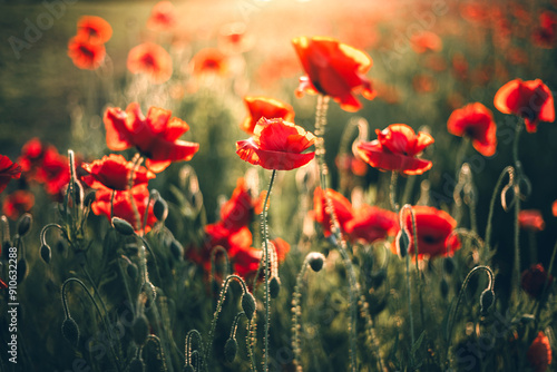 © azukichi, Obraz premium 夕日に照らされるポピー