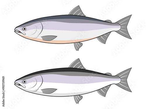 © キキセマルオ, Obraz premium 横から見た鮭