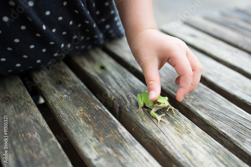 © hakase420, Obraz premium 蛙を捕まえようとしている子供