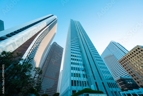 © Hanasaki, Obraz premium 下から見上げる新宿の高層ビル群