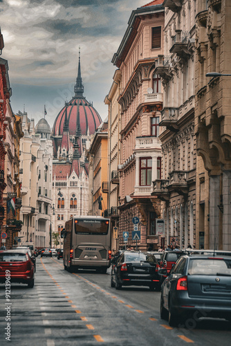 Fototapeta premium ヨーロッパの大聖堂と車列