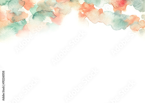 © perori, Fototapeta premium 秋 オレンジとグリーンのマーブル模様 水彩背景イラスト