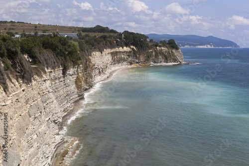 Obraz premium Скалистый обрывистый берег Толстого мыса в Геленджике, Краснодарский край,...