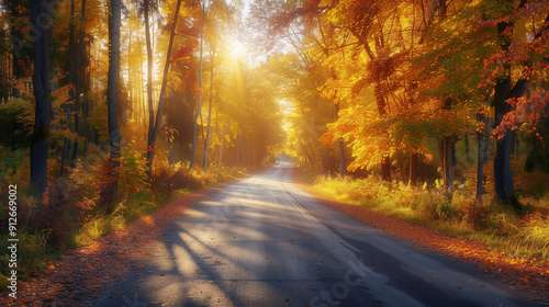 © Haru Works, Fototapeta premium 秋の紅葉の田舎道