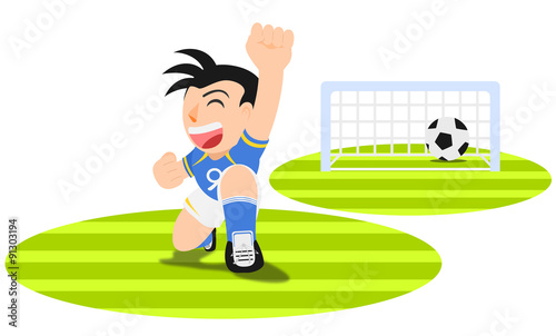 Fototapeta premium ゴールを決めて喜ぶサッカー選手