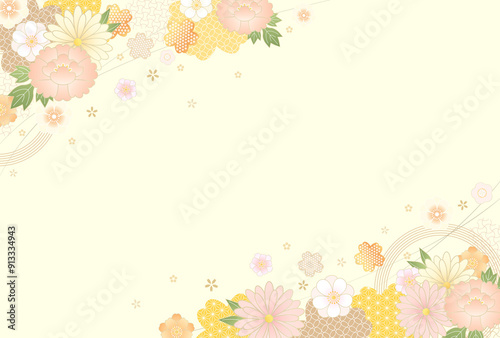 © wakuwaku, Obraz premium 和風な花のはがきフレーム画像