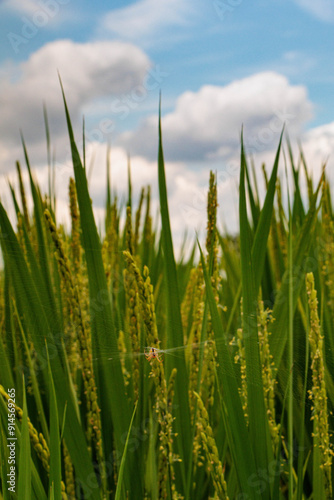 © Gottchin Nao, Fototapeta premium 青空に映える花芽をつけた稲穂