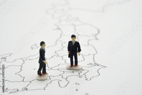 Obraz premium 白地図とビジネスマン