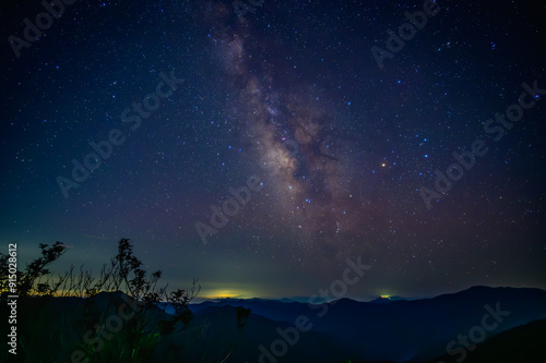 © IEPPEI, Naklejka premium 夜空の星々:木々のシルエットと満天の星