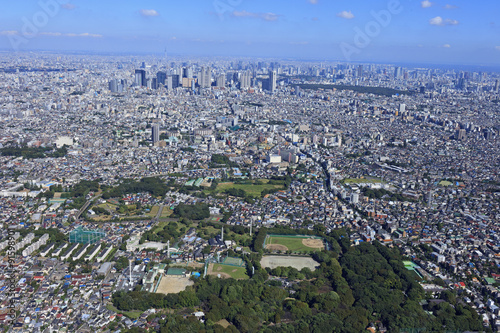Obraz premium 郊外の住宅地/和田堀公園から新宿副都心を望む