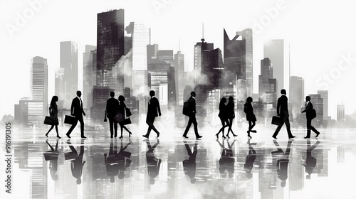 © 雅, Obraz premium 都会の高層ビル群を歩いているビジネスパーソンたちのシルエット15