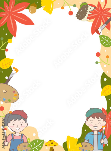 © imoan, Obraz premium 子供と芸術の秋のフレーム 紅葉 絵画